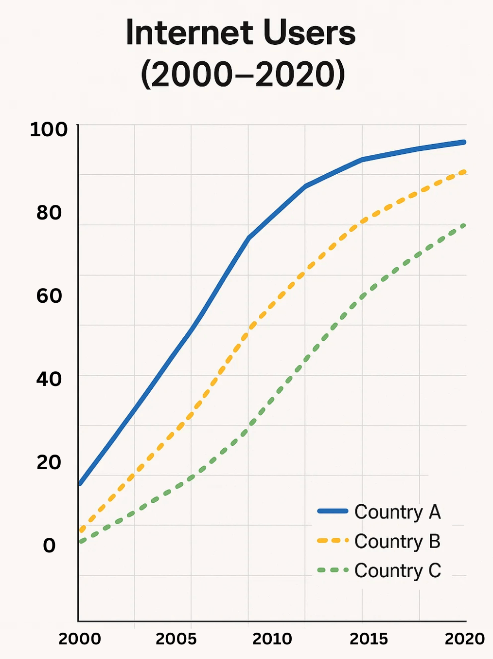 Sample 1: Line Graph of Internet Users (2000–2020)